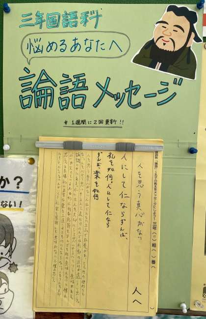 3年生の国語の単元「論語」について、各自で選んだ名言を