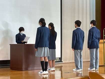 その後、生徒会長、本部役員、各委員の順に新しい役員が認証書を受け取りました。