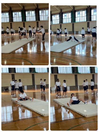 1年2組の体育の授業は、「マット運動の開脚前転」を主に練習しました。