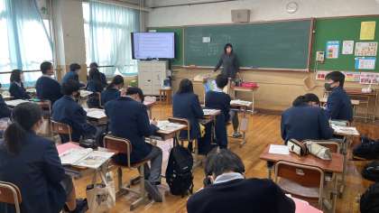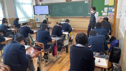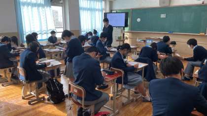 3年2組の数学の授業では、「円周角の定理」を応用して、円に内接する四角形について学びました。