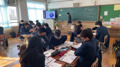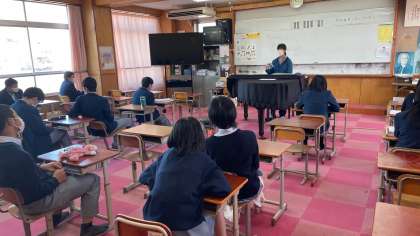 3年2組の音楽の授業では、テスト返しと解説に続き、中止になってしまった合唱コンクールの曲を合唱しました。