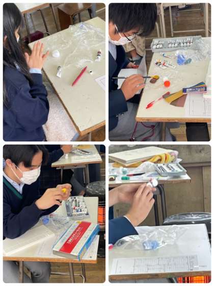 3年3組の美術の授業では、紙粘土による和菓子作りの自由課題に取り組みました。