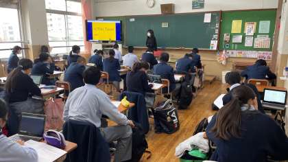 2年4組の英語の授業では、「この町で好きな場所」のことをGIGA端末で調べ、その内容を発表しました。