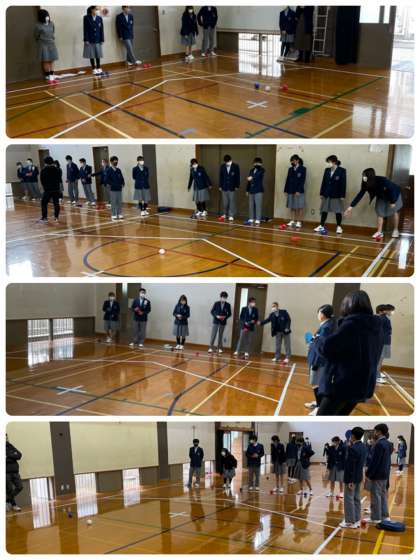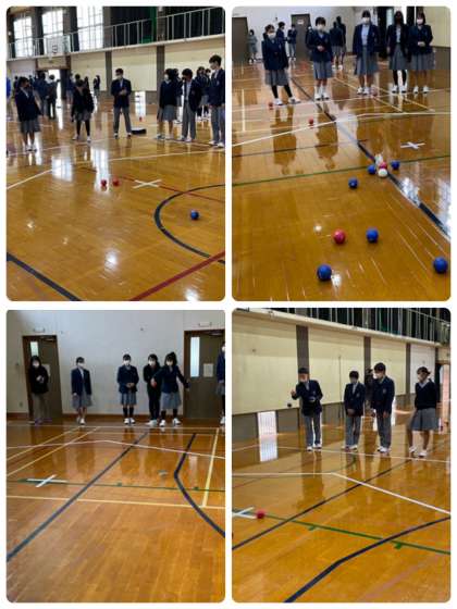 5、6時限目に人権学習を行いました。京都障害者スポーツ協会から講師の方をお招きして、「障害って何」と題した講義を受け、続けてパラスポーツのボッチャを体験しました。講義で障害の種類や原因を知り、少しの工夫をすることで私達全員が楽しめるスポーツになると気づきました。ボッチャ体験はみんなルールを覚えると真剣になり、あえて難しい技に挑戦する生徒も見られました。チームとしての作戦が見られて、競技しても観戦しても楽しむことができました。