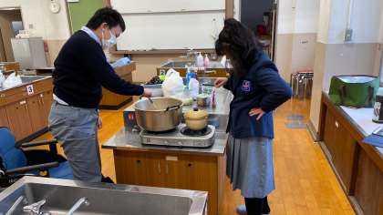 1組の生活の授業は、調理実習でした。