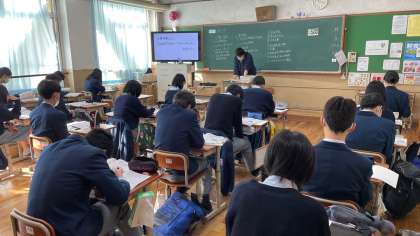 3年3組の英語の授業では、「国境を越えて助け合う大事さ」の英語の長文を“仮定法”や“関係代名詞”に注意しながら読み進め、その内容について考えてみました。