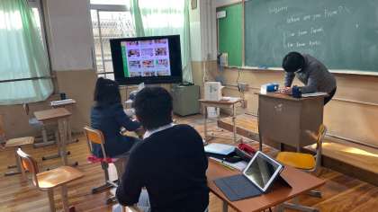 1組の英語の授業では、英語の動画を見て、その中に 出てきた