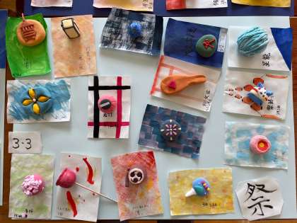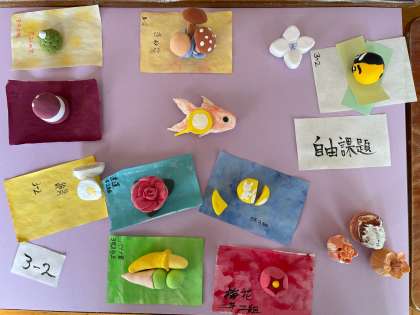 3年生の美術の単元で紙粘土による「和菓子作り」をしました。