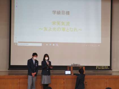 クラスの振返りでは,どのクラスも充実した二学期を過ごせたようですね。PCを使ったり,劇仕立てであったり評議員を中心に,創意工夫された内容でしたね。サプライズで,N先生から一人一人にメッセージ付のプレゼントを頂きました。応援してくれる周りの存在を確認できた心温まる集会だったのではないでしょうか。