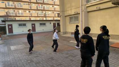 バレーボール部は、ダッシュトレーニングに続いて、ボールに慣れるためのキャッチボールをしていました。