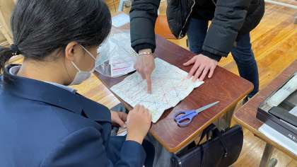 1組は生活の授業で、年末に取り掛かった刺し子による「フリークロスづくり」をしました。途中経過は順調で、上手にできつつあります。3月に完成予定です。