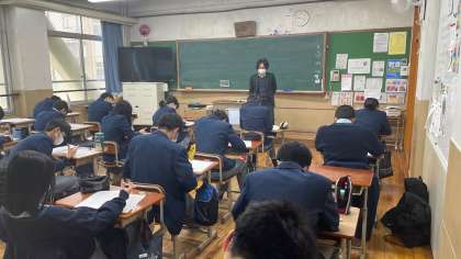 3年2組の数学の授業では、東京都の公立高校の過去の入試問題に挑戦しました。