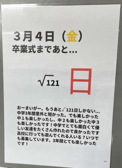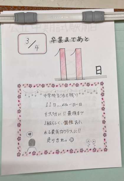 卒業まで、あと11日、通学日数7日となりました。