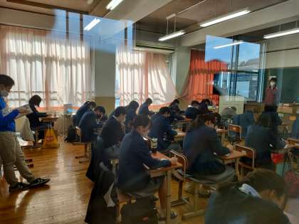 今年のあしあと検定は教室内での実施,検定は廊下で・・・というスタイルでした