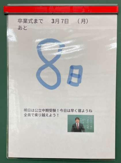 卒業まで、あと8日、通学日数6日となりました。