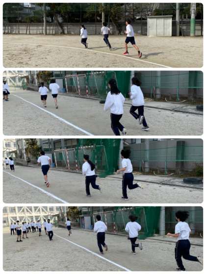 2年3組の体育の授業は、前回の1500m走のタイムトライアルに続き、今回は、10分間走でした。