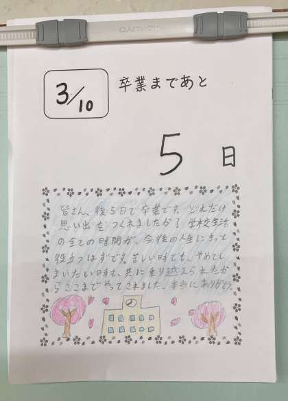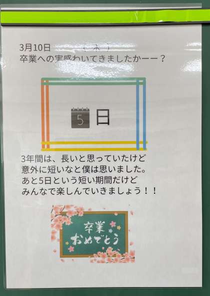 卒業まで、あと5日、通学日数4日となりました。