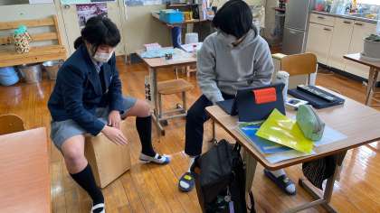 1組の音楽の授業では、ペルー発祥の打楽器“カホン”を使って、リズム打ちの練習をしました。