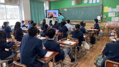 1年3組の技術・家庭科(家庭科)の授業では、出題された食物が6つの食品群のどれに該当するかをクイズ形式で行うことにより、理解をより深めました。