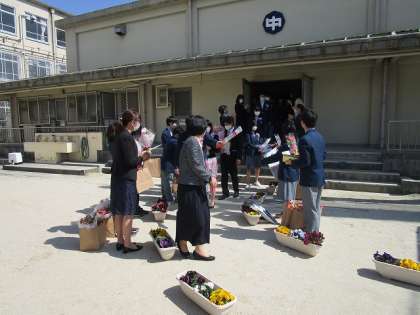 式の後、在校生、保護者の皆様、教職員に花道で見送られました。