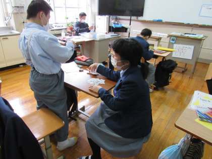 1組の生活の授業では、掲示物の製作に続いて英語の教材づくりをしました。