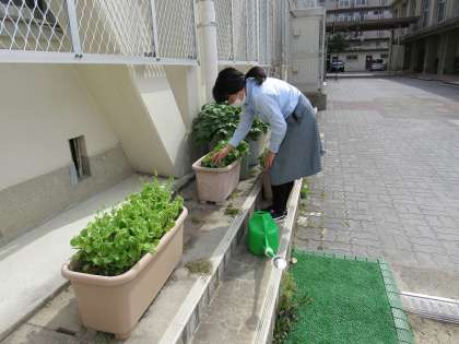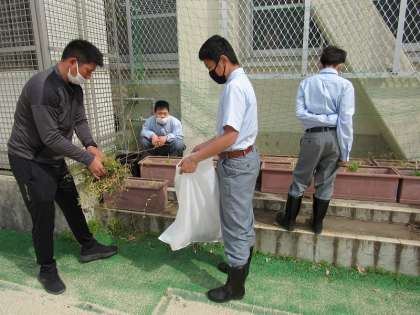 1組の生活の授業では、これからプランター栽培する準備として,草抜きをしました。