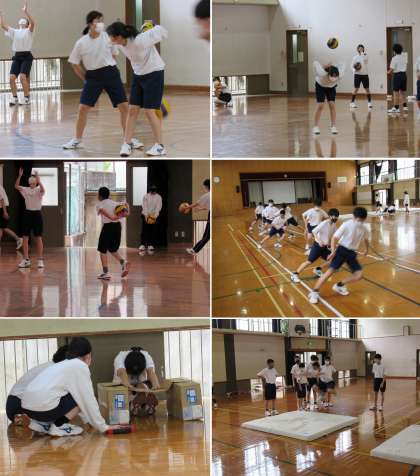 2年2組の体育の授業では、「集団行動」の復習に続き,ボールを使ったウォーミングアップの後,新体力検定の練習をしました。