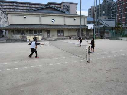 軟式テニス部は,ボレーアンドボレーやサーブの練習をしていました。