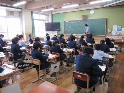 1年2組の数学の授業では、正の数,負の数の乗法・除法について問題を解きながら学びました。