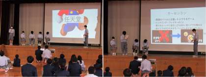 パワーポイントによるプレゼンテーションのほか,寸劇,クイズ形式,歌などを駆使しての発表で,みんな盛り上がっていました。