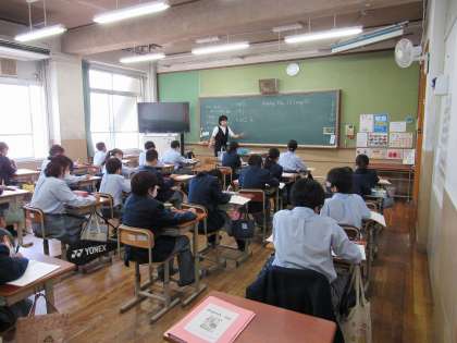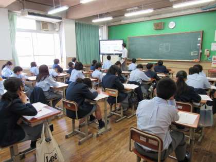 1年2組は英語,3組は社会,4組は理科の授業で、それぞれテスト返し,解説と振返りでした。