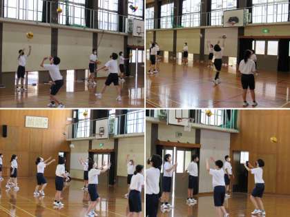 2年3組の体育の授業では、バレーボールのサーブの練習に続き,ペアを作ってパスの練習をするとともに,互いの改善点などを話し合いました。