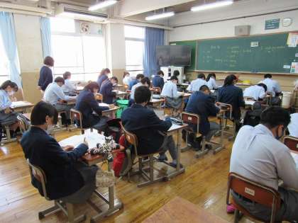 3年2組は国語,3組は英語の授業で、それぞれテスト返しと振り返りでした。