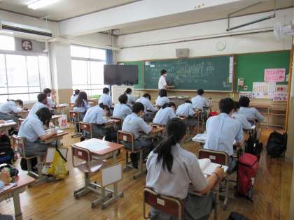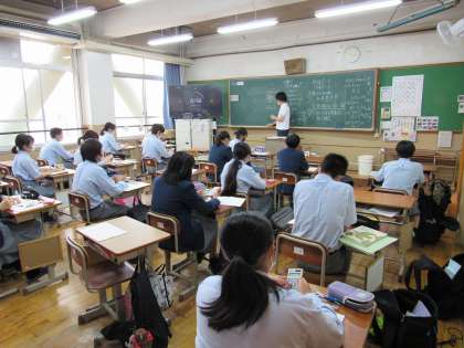 3年3組の英語の授業では、修学旅行に先立ち,旅行会社の人になりきって英語により生徒に説明するという設定で,旅行先である北陸地方の情報を調べて,プレゼンテーションの準備をしました。