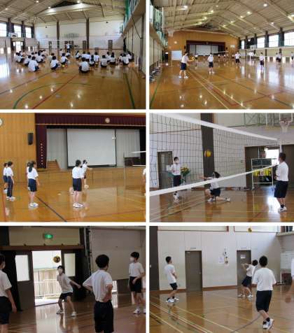 2年2組の体育の授業では,バレーボールのルールの確認を行った後,男女に別れてゲームをしました。