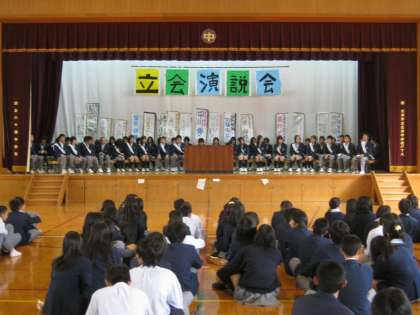 生徒会本部役員の立候補者による立会演説会がありました。