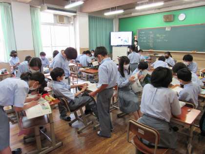 1年4組の社会の授業では,「人々の生活と自然環境」に関する振返りを行いました。