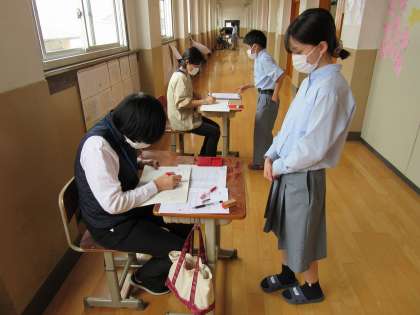 検定中は真剣なまなざしで,自分のノートと向き合っていました。