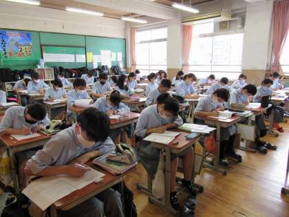 2年2組の数学の授業では、定期テストに向けた復習と演習問題を解きました。