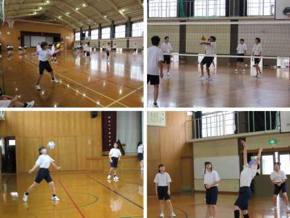 2年3組の体育の授業では、バレーボールの基本練習の後,ゲームをしました。