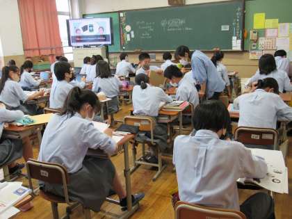 2年2組の英語の授業では,パフォーマンステストに続いて,定期テスト対策をしました。