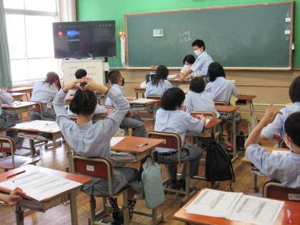 1年3組の技術・家庭科(家庭科)の授業は,テスト返しと振り返りでした。