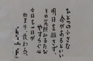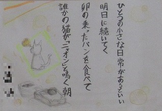 1年生の国語の単元で「谷川俊太郎さんの詩“明日”の一連を創作しよう」というテーマで創作したみなんさんの作品「ひとつの小さな〇〇があるといい」を廊下に掲示しています。