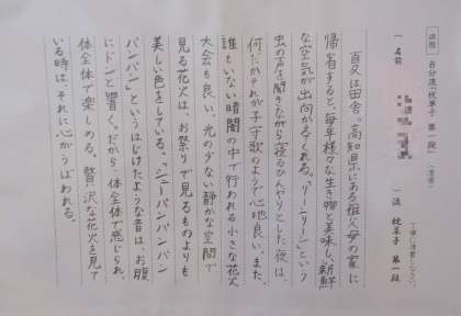2年生の国語の単元「枕草子」において,「自分流の“枕草子”を完成させよう」というテーマで,枕草子を自分流にアレンジして,これを清書したものを廊下に掲示しています。