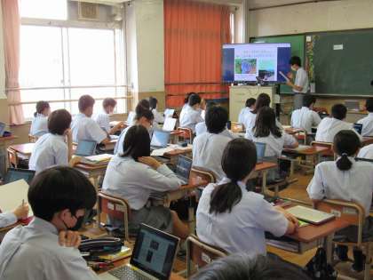 2年3組の理科の授業では、光合成について学び、続いて夏休みの課題として参加する「市村アイデア」の説明を受けました。
