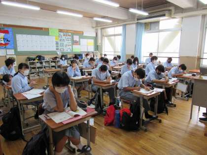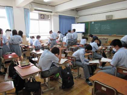 3年4組の英語の授業では、「ミニアクティヴィティ」という単元で、「Is it easy for you to get up early?」などの質問に続いて頼みごとをする会話などを通じて、文法を学びました。