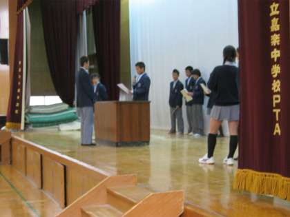 各クラスの学級役員が起立をして、代表生徒が