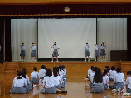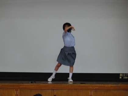 K君の司会のもと,Oさんのダンス,嘉楽2年生のダンスチーム弱酸性がダンスを披露してくれました。