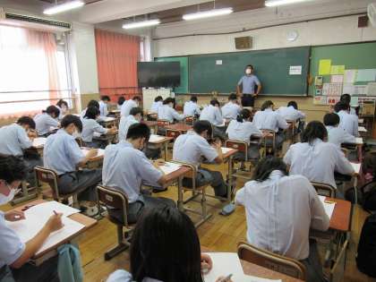 2年2組の数学の授業では、夏休み明けの確認テストを受けました。