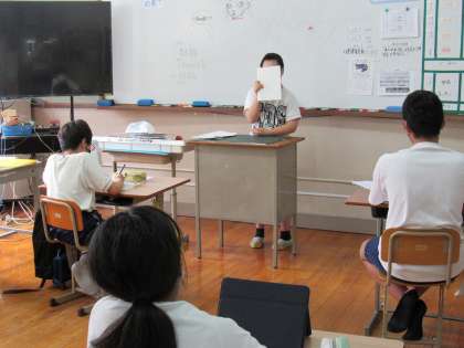 1組の生活の授業では、9月2日に予定されている「私の主張」の原稿を完成させ、続いてスピーチ練習をしました。